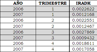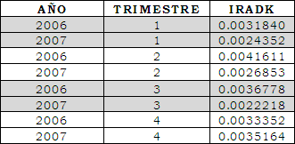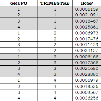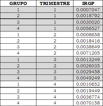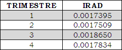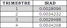Tabla 1. IRAD por trimestre para el nivel de tensión 1.