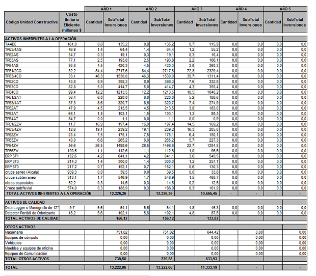 La Empresa, mediante la comunicación E-2011-002161 reportó a la CREG las proyecciones de demanda, las proyecciones de gastos de AOM de distribución y el programa de nuevas inversiones, clasificadas según el listado de unidades constructivas establecido en el Anexo No. 1 de la Resolución CREG 011 de 2003.