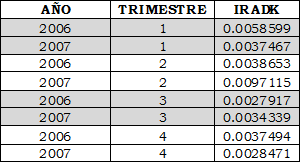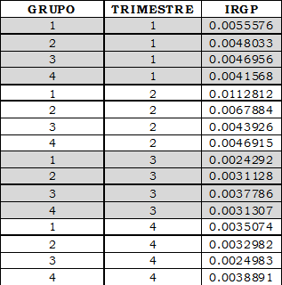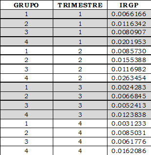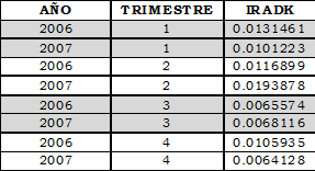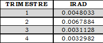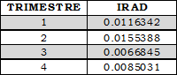 Tabla 1. IRAD por trimestre para el nivel de tensión 1.