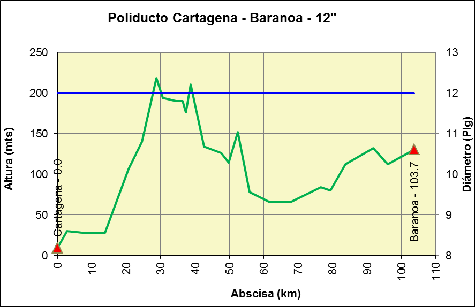 Gráfica 30 Perfil poliducto Cartago - Yumbo