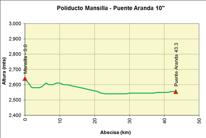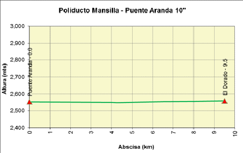 El tramo mansilla – Puente Aranda tiene una capacidad nominal de transporte de 68,4 kbd. En promedio se han transportado 36,37 kbd en el periodo que comprende abril de 2013 a abril de 2015, lo que indica que el porcentaje de utilización promedio de este ducto ha sido de 53,2% con una volatilidad mensual de la cantidad transportada de 1,2%. Los productos que más se transportan por este tramo son: Gasolina Motor (45,81%), B2E (28,46%), B2 (14,5%) y JET A1 (14,46%).