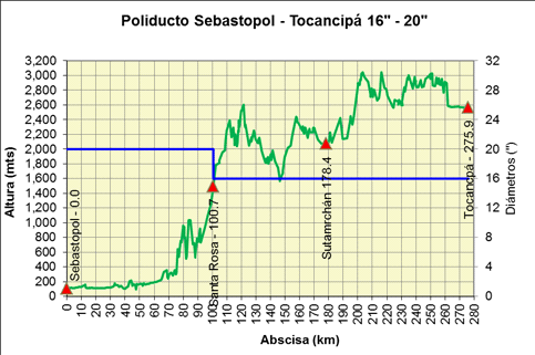 Gráfica 32 Perfil poliducto Sebastopol - Tocancipá