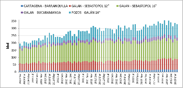 A continuación se presenta un análisis de la evolución del volumen transportado para los diferentes tramos del sistema de poliductos