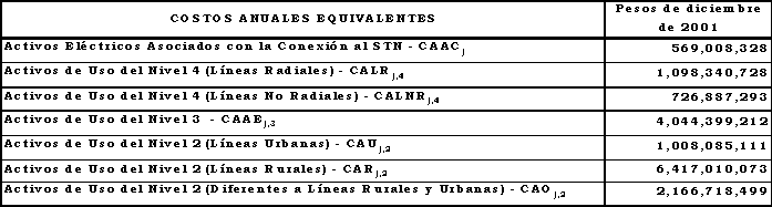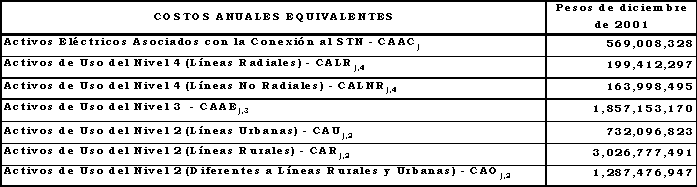 COSTOS ANUALES EQUIVALENTES | Pesos de diciembre de 2001 |