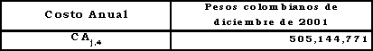 Que dentro de la información enviada por la EMPRESA DE ENERGÍA DE ARAUCA E.S.P. mediante comunicación radicada en la CREG bajo el No. 011885 recibida el 30 de diciembre de 2002 y CREG 001407 del 13 de febrero de 2003, se incluyó el siguiente Costo Anual Equivalente de los Activos Eléctricos Asociados con la Conexión al STN – CAACj: