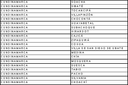 La metodología para la estimación de las metas individuales de reposición contenidas en la Resolución CREG 009 de 2006, tuvo en cuenta entre otros parámetros el reporte de ventas de GLP que realizaron las empresas distribuidoras al SUI en cilindros de las diferentes denominaciones en el segundo semestre del año 2005. Por esta razón no se tiene en cuenta las ventas atadas a las plantas de llenado que poseen las empresas sino que se toman las ventas en cilindros reportadas en lo diferentes municipios, de esta manera no se tuvo en cuenta a la empresa Rayogas para la reposición intensiva en la ciudad de Bogotá por cuanto no reportó ventas en cilindros para la ciudad de Bogotá. A continuación se observan los municipios de Cundinamarca en donde la empresa reportó sus ventas durante el año 2005.