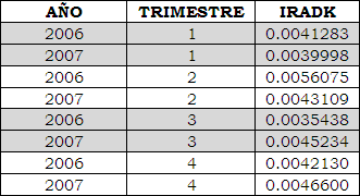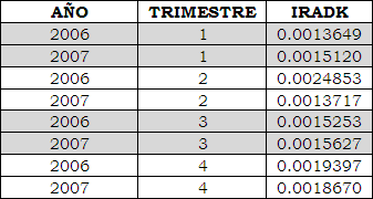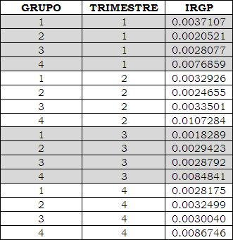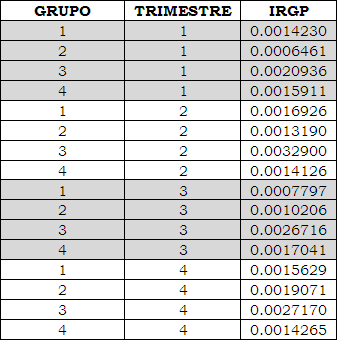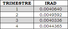 Tabla 1. IRAD por trimestre para el nivel de tensión 1.