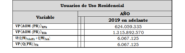 | Valparaíso-Caquetá | Residencial | - | 111,561 | - | 113,871 | - | 116,292 | - | 118,724 | - | 121,263 |
