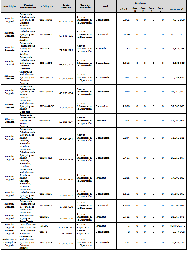 | Albania-Caquetá | Residencial | - | 105,049 | - | 107,329 | - | 109,657 | - | 112,032 | - | 114,464 |