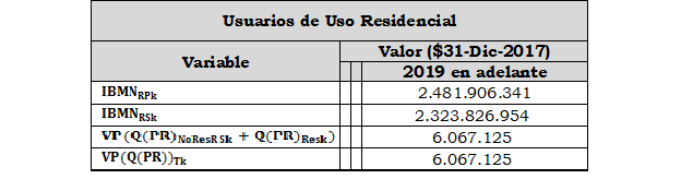 | Valparaíso-Caquetá | Residencial | - | 137,625 | - | 140,537 | - | 143,562 | - | 146,596 | - | 149,743 |