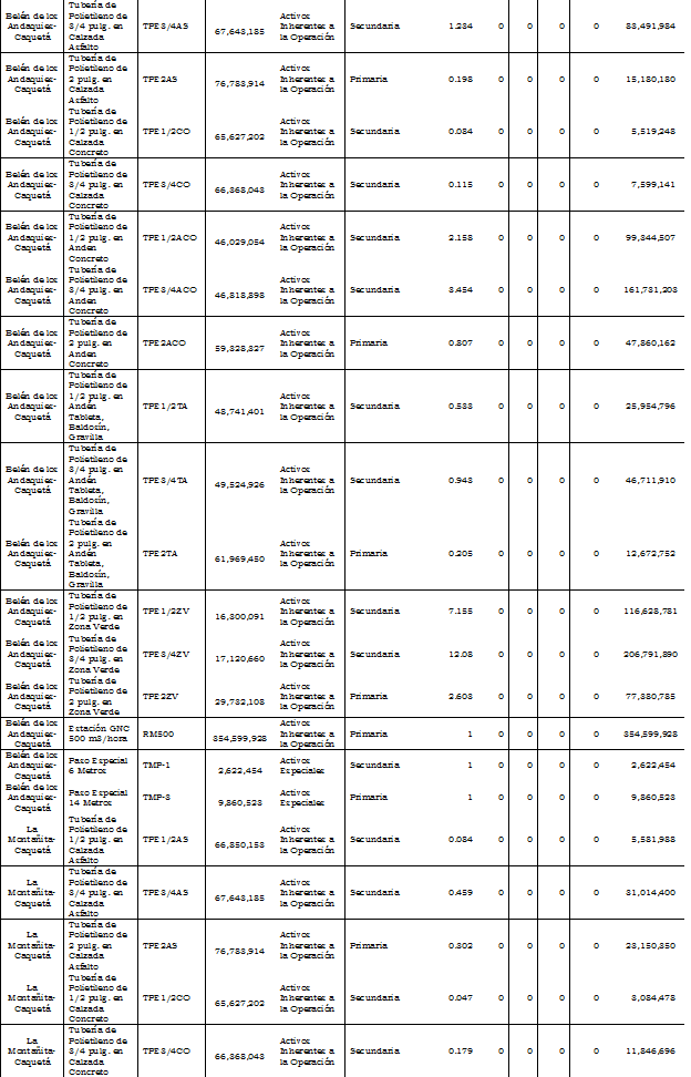 | Belén de los Andaquies-Caquetá | Comercial | - | 7,272 | - | 7,272 | - | 7,272 | - | 7,272 | - | 7,272 |