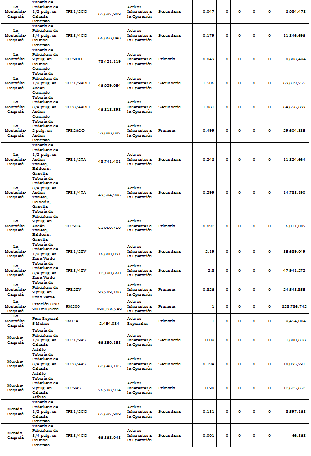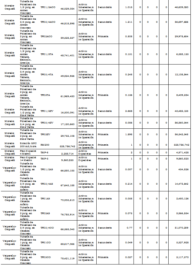 | Morelia-Caquetá | Comercial | - | 2,424 | - | 2,424 | - | 2,424 | - | 2,424 | - | 2,424 |