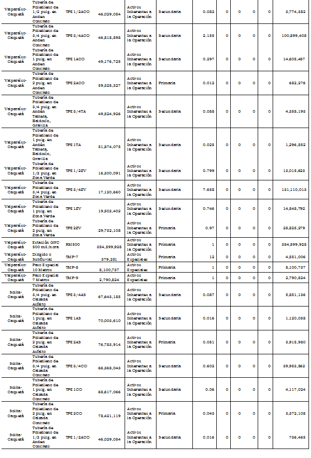 | Valparaíso-Caquetá | Comercial | - | 2,424 | - | 2,424 | - | 2,424 | - | 2,424 | - | 2,424 |