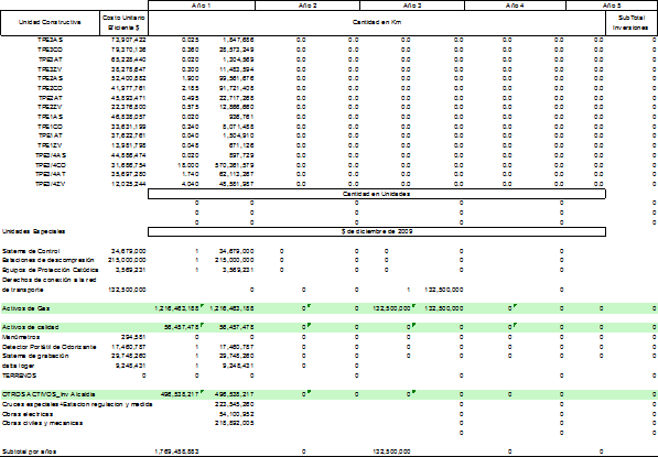 La solicitud tarifaria presentada por la empresa incluye las proyecciones de demanda, las proyecciones de gastos de AOM de distribución y el Programa de Nuevas Inversiones, clasificadas según el listado de unidades constructivas establecido en el Anexo No. 1 de la Resolución CREG 011 de 2003.