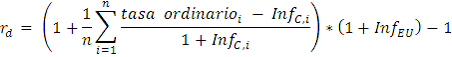 El costo de la deuda se calcula como el promedio aritmético de las tasas de interés para créditos ordinarios con plazo mayor o igual a cinco (5) años, publicadas por el Banco de República. Así, con datos a diciembre de 2008 se obtiene una tasa en términos reales de 10,53%.
