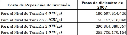 Artículo 5. Costos de reposición de la inversión. Los costos de reposición de la inversión del OR Centrales Eléctricas del Norte de Santander S.A. E.S.P. para cada nivel de tensión, calculados en la forma establecida en la Resolución CREG 097 de 2008, son los siguientes: