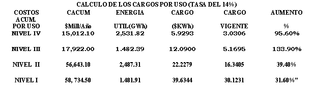 Como síntesis de todo lo anterior, teniendo en cuenta los argumentos aquí expuestos y los soportes técnicos que aparecen en los documentos que se adjuntan, la solicitud de reposición se basa en la corrección de las cantidades de energía reportadas y las cantidades de los inventarios erróneas que fueron reportadas, en la inadecuada valoración de los inventarios en los que se utilizó un promedio que no está de acuerdo con las características de nuestro sistema y la utilización de una tasa de remuneración de la inversión, inferior en cinco puntos a la del sector de gas natural, cuya inversión presenta claramente riesgos inferiores a los del sector de energía eléctrica. En tales circunstancias, presentamos a su consideración el cuadro de tarifas que sometemos a la aprobación de la Comisión de Regulación de Energía y Gas: