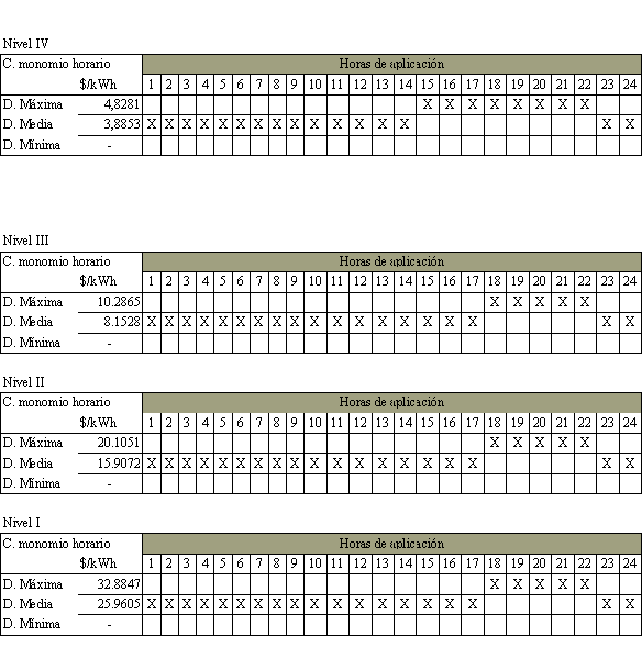 Artículo 2°. Cargos monomios horarios. Los cargos monomios horarios por uso del Sistema de Transmisión Regional y/o Distribución Local operado por la Electrificadora del Atlántico, serán los siguientes, a pesos de diciembre de 1996: