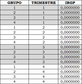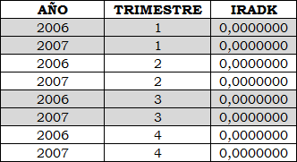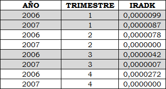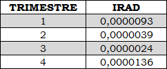 Tabla 1. IRAD por trimestre para el nivel de tensión 1.