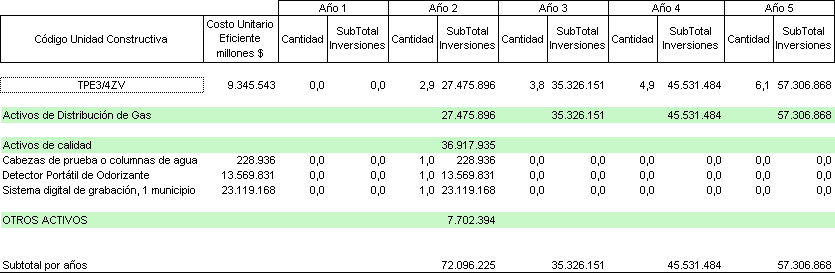 ARTÍCULO 2°. Inversión Base. La Inversión Base para determinar el cargo de distribución para el Mercado Relevante definido en el Artículo 1 de esta Resolución se compone como se indica a continuación: