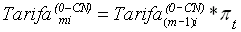 | Tarifami(CN-CS) | Tarifa residencial aplicada al estrato i, para el rango de consumo entre CN y CS, calculada para el mes m. |