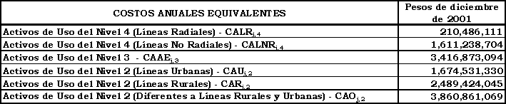 a) Costo anual para remunerar los activos de los Niveles de Tensión 4, 3 y 2, sin aplicar los criterios de eficiencia de que trata el Anexo No 8 de la Resolución CREG 082 de 2002: