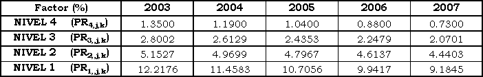 Parágrafo. Los factores de que trata el presente Artículo se aplicarán de acuerdo con la siguiente expresión: