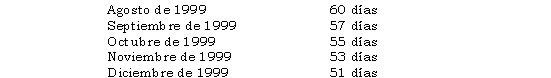 d) Reducir y mantener los días promedio de cobro al usuario final del orden de los 45 días, a partir de 2000, de acuerdo con el programa de reestructuración presentado