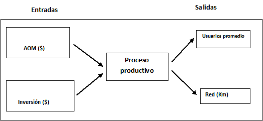 La eficiencia está relacionada con la economía de recursos, la cual se define como la relación entre los resultados obtenidos o salidas y los recursos utilizados o entradas. Dado que tenemos como entradas las variables de AOM e inversión y como salidas las variables de kilómetros de Red y usuarios, la eficiencia será una magnitud multidimensional.