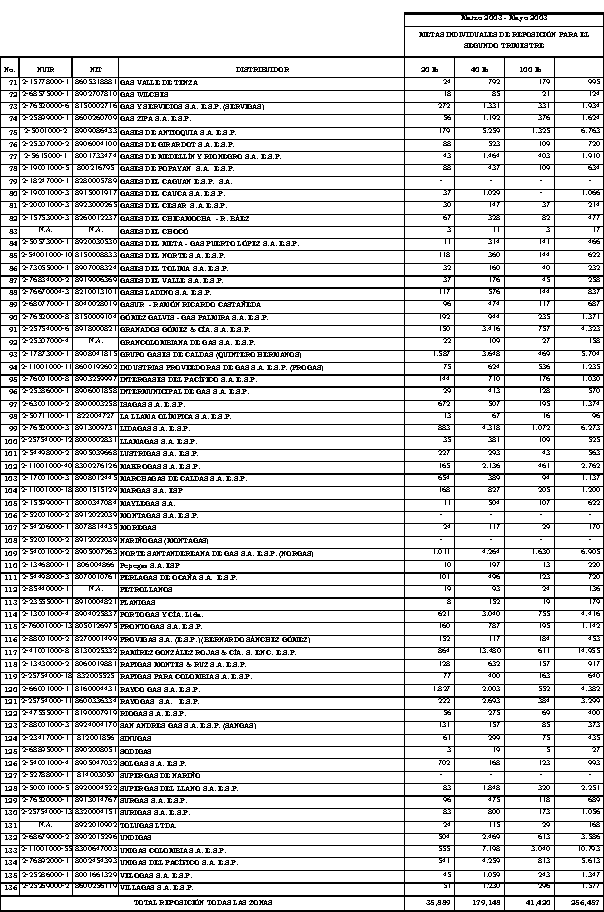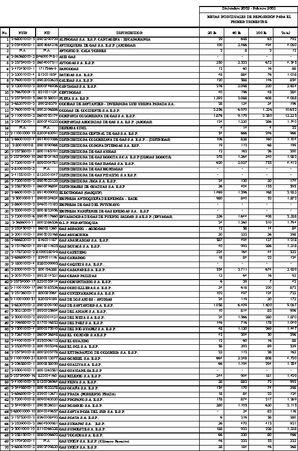 Que la Comisión de Regulación de Energía y Gas en la Sesión No. 201 del 22 de octubre de 2002, acordó expedir las metas individuales de reposición y mantenimiento de cilindros y tanques estacionarios utilizados en la prestación del servicio de Gas Licuado del Petróleo (GLP) de acuerdo con lo establecido en la Resolución CREG-019 de 2002;