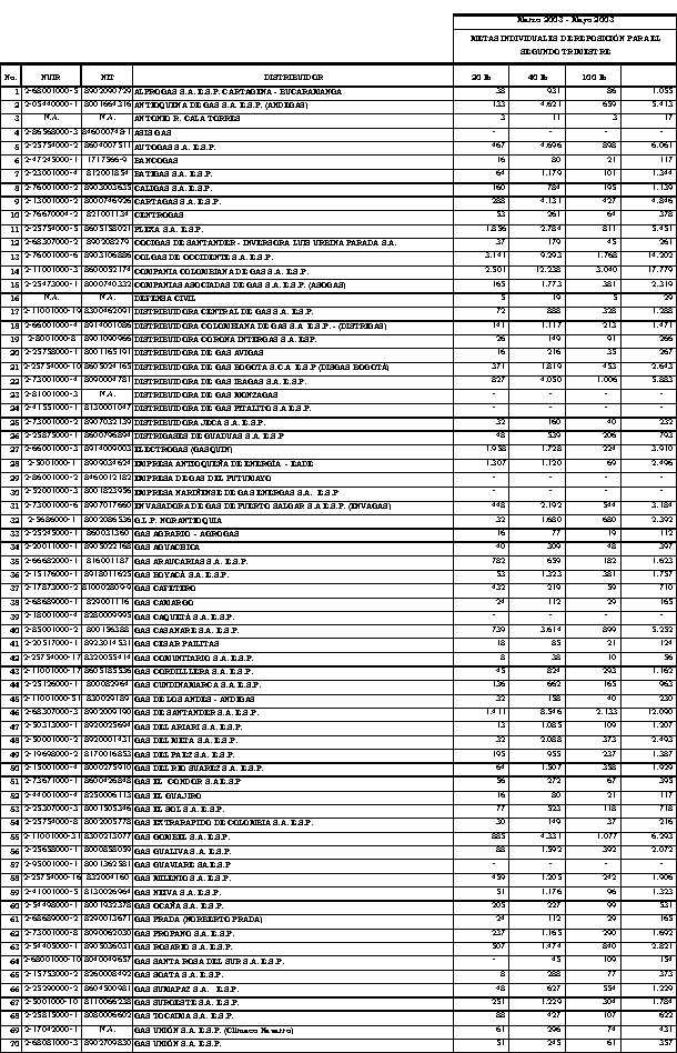 Parágrafo 2o. A partir del 1 de febrero de 2003, los cilindros nuevos que ingresen al parque, requeridos para ampliar la cobertura en la prestación del servicio o para atender incrementos de demanda, deberán corresponder únicamente a capacidades nominales de 30 u 80 libras.