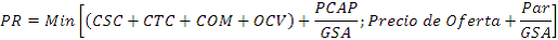 PCAP = Valor reconocido como Costo de Arranque-Parada asociado con la Generación de Seguridad Fuera de Mérito, que será igual al valor del Precio de Arranque-Parada ofertado por el agente generador, antes de entrar en vigencia esta Resolución, al Centro Nacional de Despacho para la configuración correspondiente a la Capacidad Efectiva Neta y que sea igual a la declarada para ese día por el agente de conformidad con lo establecido en la Resolución CREG-051 de 2009. Será igual a cero si la planta se arranca según el despacho ideal o si arrancó desde un día anterior y continúa generando.