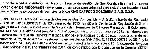 Mediante oficio con radicado CREG E-2018-005867 la Superintendencia de Servicios Públicos Domiciliarios a través de la Delegada de Energía Eléctrica y Gas Combustible remitió la información solicitada por esta Comisión. En atención a lo anterior procederá esta Comisión a exponer el análisis de los resultados de la misma a efectos de resolver las consideraciones y argumentos expuestos por parte de Gas Express de Colombia en su recurso frente a la Resolución CREG 048 de 2018.