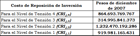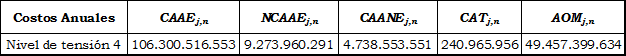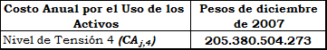 Teniendo en cuenta lo expuesto, para el nivel de tensión 4 se obtienen las siguientes variables, expresadas en pesos de diciembre de 2007: