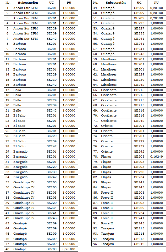 En el caso particular de las subestaciones Occidente y Tasajera de EPM, se trata de subestaciones encapsuladas con configuración en anillo. Dado que en la Resolución CREG 011 de 2009 no se definieron unidades constructivas para subestaciones encapsuladas con configuración en anillo, las bahías reportadas por EPM se asimilaron a una configuración “Encapsulada Doble Barra” pero, dada la configuración en anillo, no se reconoció la unidad constructiva de barraje.