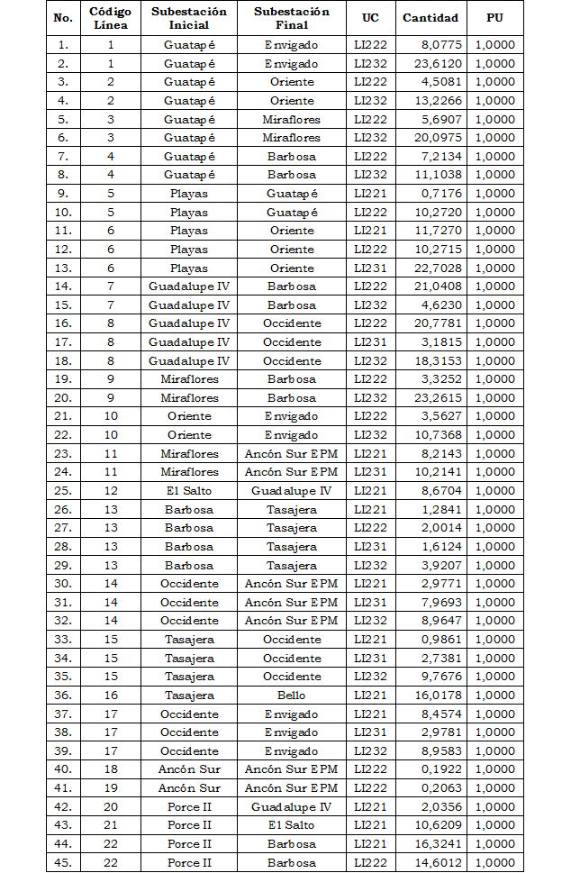 Teniendo en cuenta las anteriores consideraciones se calculan para los activos representados por Empresas Públicas de Medellín E.S.P. en el Sistema de Transmisión Nacional - STN, las siguientes variables principales: