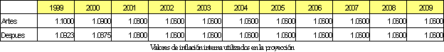 Los valores de inflación utilizados en los dos escenarios es el siguiente