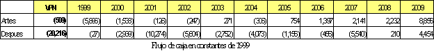 1. Valores Presentes del Flujo de Caja para el período 1999-2009