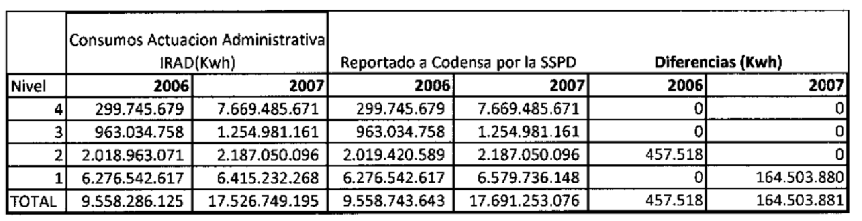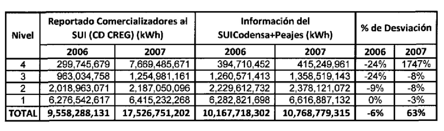 De otra parte, el OR en su recurso informa que se presentan diferencias entre la consulta de la CREG, realizada los días 25, 26 y 27 de marzo de 2010, y lo enviado por la SSPD, sobre los consumos de los años 2006 y 2007. Por lo anterior, la CREG consideró pertinente realizar una nueva consulta de la información del SUI dentro de la contestación del recurso de reposición con el fin de identificar las diferencias mencionadas.