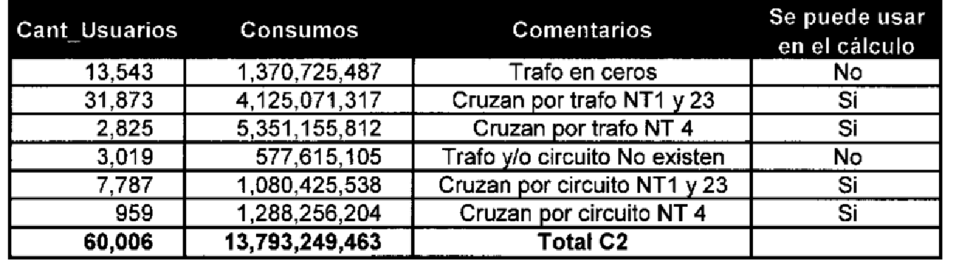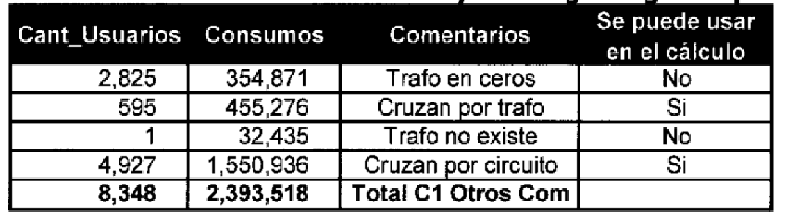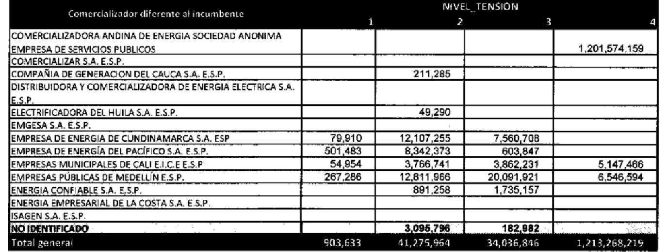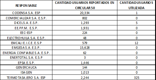 La información reportada por los comercializadores, en respuesta a la Circular CREG 050 de 2009, sólo se utilizó en los casos en el que nivel de tensión asociado al usuario en los formatos del SUI no correspondió con el nivel de tensión de facturación reportado en la respuesta a esa circular. En la siguiente tabla se resume la información reportada y utilizada.