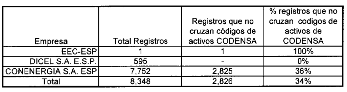 Tras la revisión de los registros mensuales de códigos, incluidos en el anexo de Codensa S.A. E.S.P., en el cual según el recurrente se encuentran todos los registros cuyos códigos no coinciden con los asignados por el OR, la CREG encuentra que de estos sólo el 18,6% no cruza entre los formatos C1, C2, B1 y B2, y por lo tanto fueron estos los que no se utilizaron en el cálculo. Sin embargo, la razón de no haberse incluido sí corresponde a lo que el OR menciona, es decir, porque los códigos reportados por los comercializadores no coinciden con los reportados por el OR en los formatos de calidad.