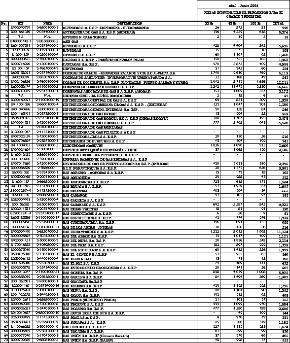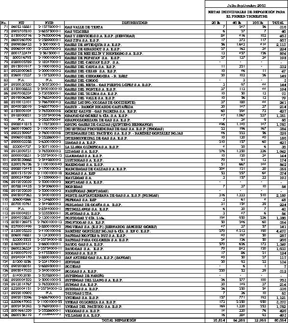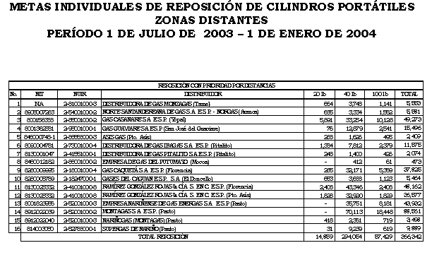 Que mediante la Resolución CREG-071 de 2002 se establecieron las metas individuales de reposición por empresa, para ser ejecutadas durante el período diciembre de 2002 hasta noviembre de 2003.