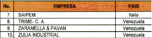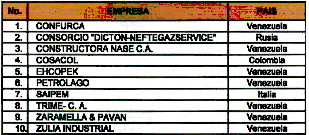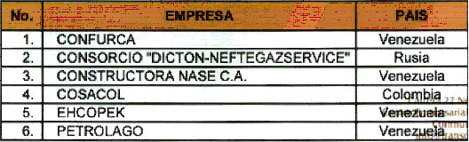 4.14. En el proceso de contratación con las firmas venezolanas, se esperaba la participación de las siguientes empresas: