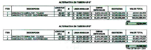 Como puede resultar obvio, derivado de la presentación de esta solicitud, los valores estimados por la Comisión de Regulación de Energía y Gas resultaron muy inferiores a aquellos en los que efectivamente va a incurrir TRANSORIENTE en la construcción del gasoducto, tal y como se muestra en el presente documento.