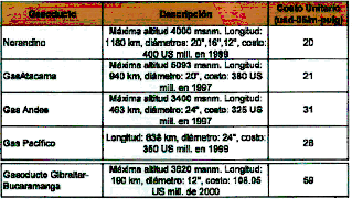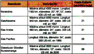 Dichas cifras, según lo revela el documento CREG, corresponden a los gasoductos Norandino, GasAtacama, Gas Andes y Gas Pacífico, denominados, gasoductos Andinos: