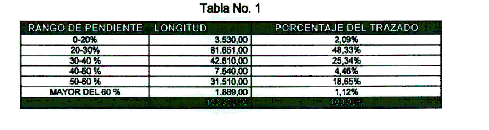 a) SECTOR 1 PK 00 + 000 AL PK 10+000: Este trayecto se caracteriza por el predominio de depósitos coluviales de poco espesor, con fuertes pendientes y con sectores geológicamente inestables debido a la presencia de fenómenos de remoción en masa tales como deslizamientos planares y reptación.