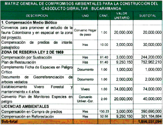 En ese sentido, tal y como se desprende del Anexo A del presente documento, la cotización presentada por ISMOCOL, reunía no solamente una condición de seriedad que le da el hecho de ser una de las principales empresas de construcción del país, sino adicionalmente, era la empresa con la cual TRANSORIENTE había concluido de manera exitosa el contrato para la construcción del gasoducto Barrancabermeja – Payoa. El contenido de la cotización hecha por Ismocol, se resume en el siguiente cuadro: