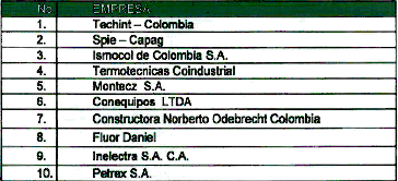 3.6 Para efectos de la obra civil, TRANSORIENTE dispuso en los términos de referencia que buscaban la construcción del gasoducto, un esquema de Precio Global Fijo, teniendo en cuenta el valor definido como presupuesto por parte de la Comisión de Regulación de Energía y Gas, al cual invitaron a todas aquellas empresas de reconocido prestigio nacional e internacional, que cumplieran con los requerimientos de carácter técnico y financiero que garantizaran la ejecución adecuada y oportuna del proyecto. El listado de empresas invitadas fue el siguiente: