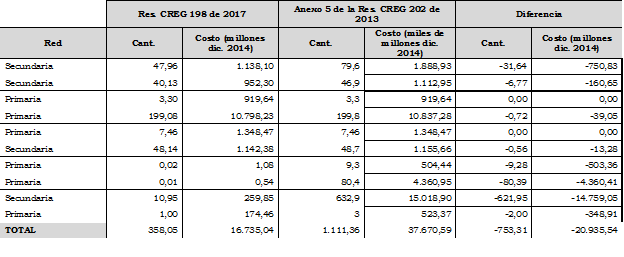 Resolución CREG 198 de 2017 | $/m³ | 2017 | 2018 | 2019 - 2021 |