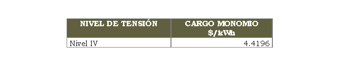 Artículo 1º. Modificar el cargo monomio por uso del Sistema de Transmisión Regional y/o Distribución Local operado por las Empresas Municipales de Cartago, aprobado por el artículo 1° de la resolución CREG-175 de 1997 para el Nivel de Tensión IV, el cual a pesos de diciembre de 1996, será el siguiente: